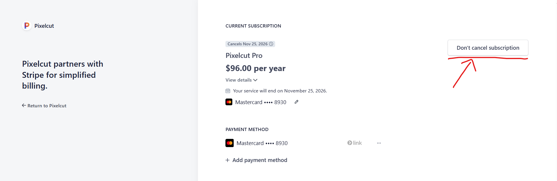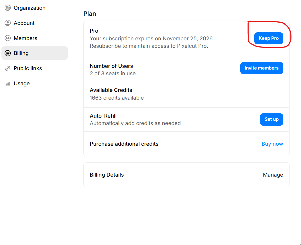 - Resuming: If you ever change your mind and want to continue using Pixelcut, you can simply click on Keep Pro to reactivate your subscription instantly!